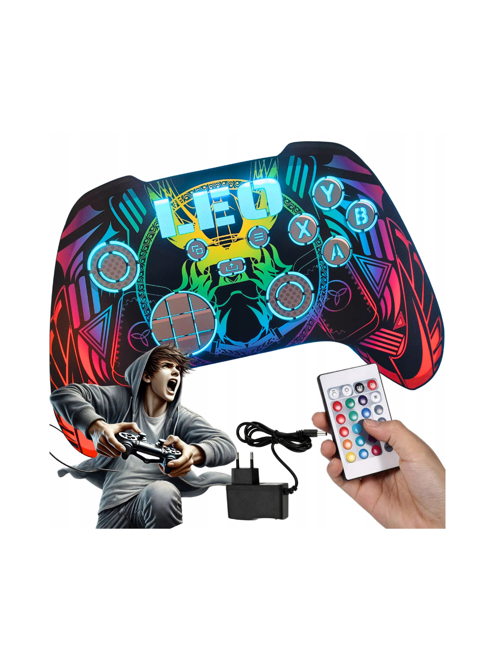 ✅ Lampka Nocna 3D LED w komplecie z dedykowanym pilotem do zmiany aż 16 kolorów w kształcie pada, kontrolera do konsoli, super modna 😉
